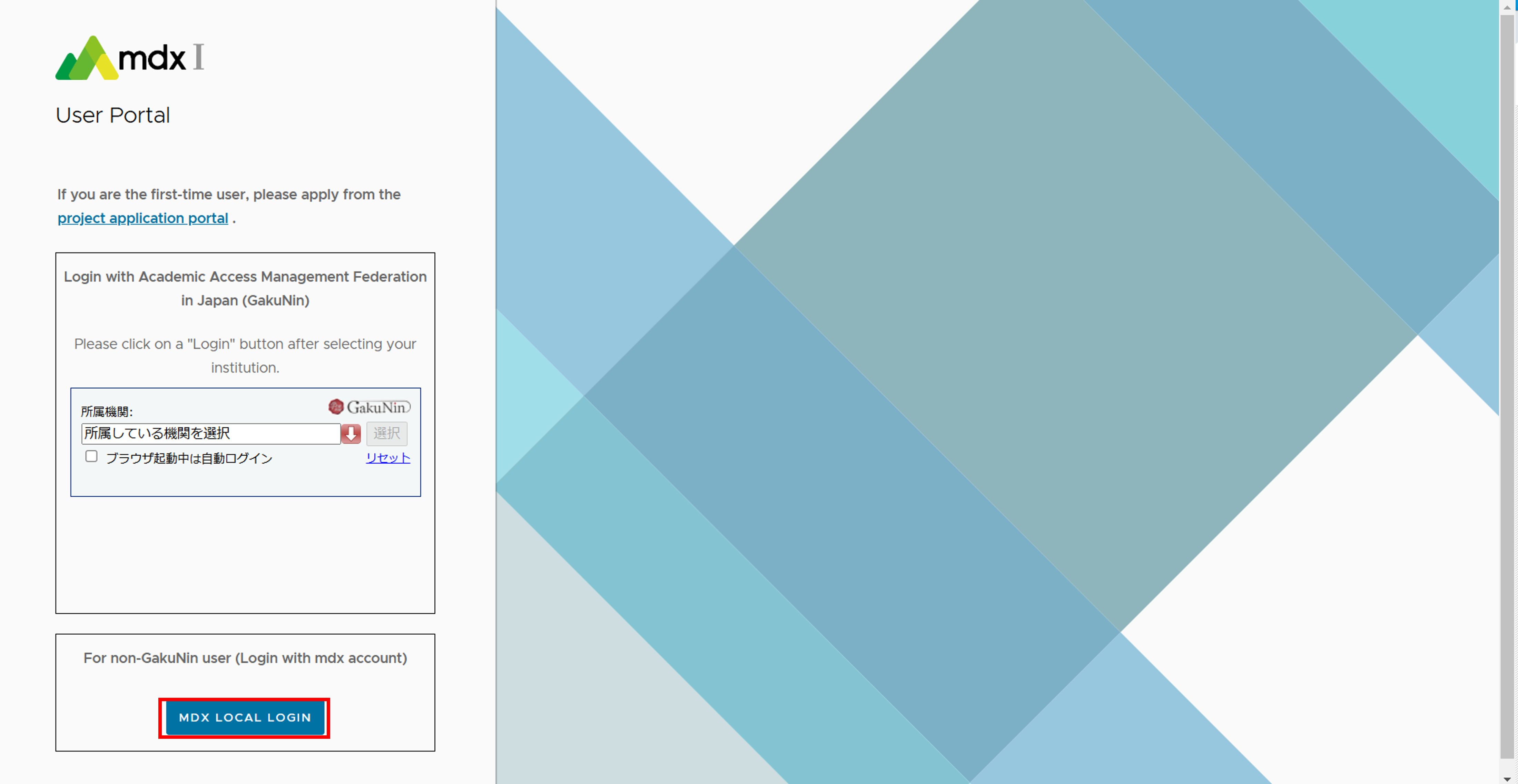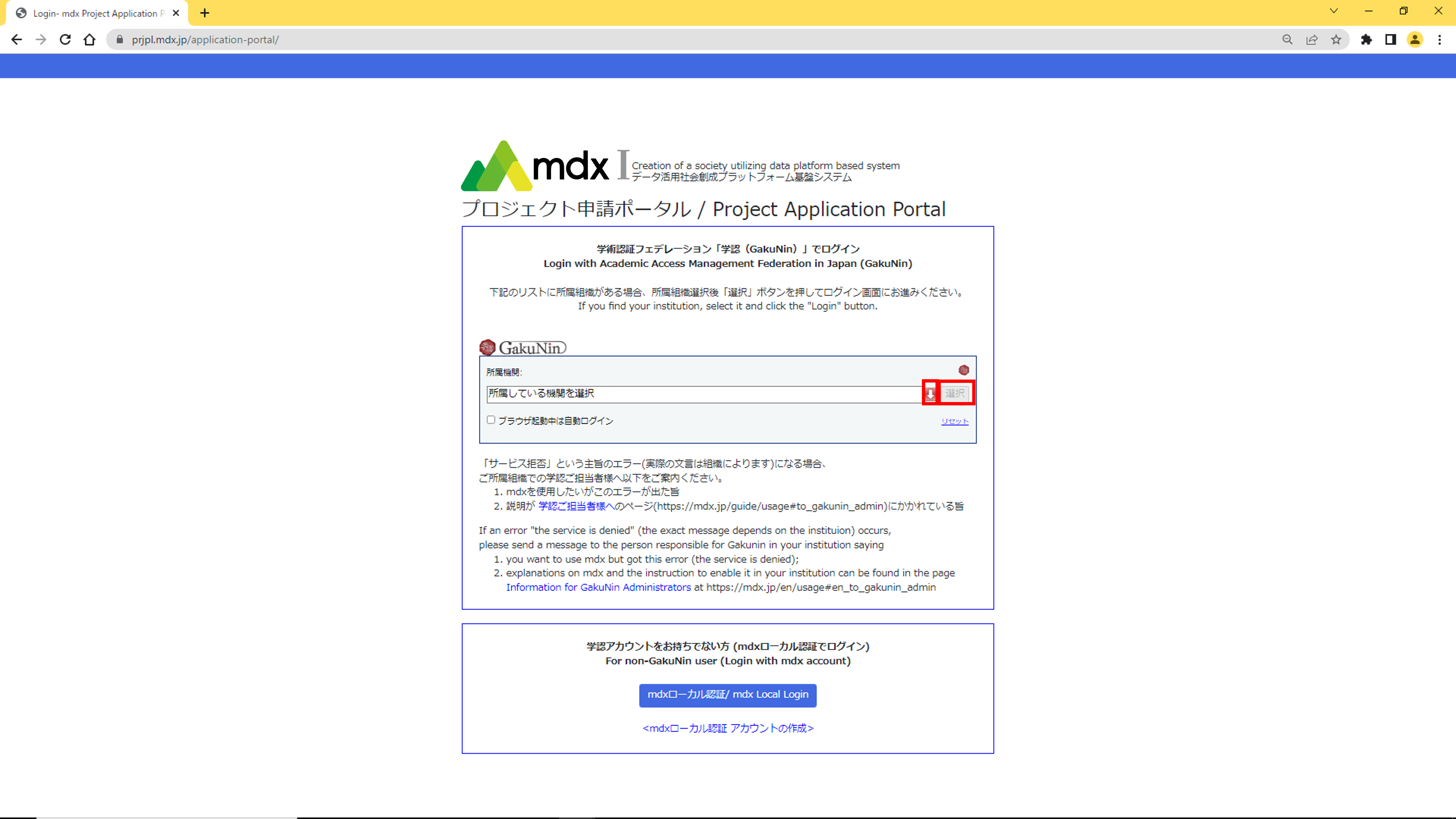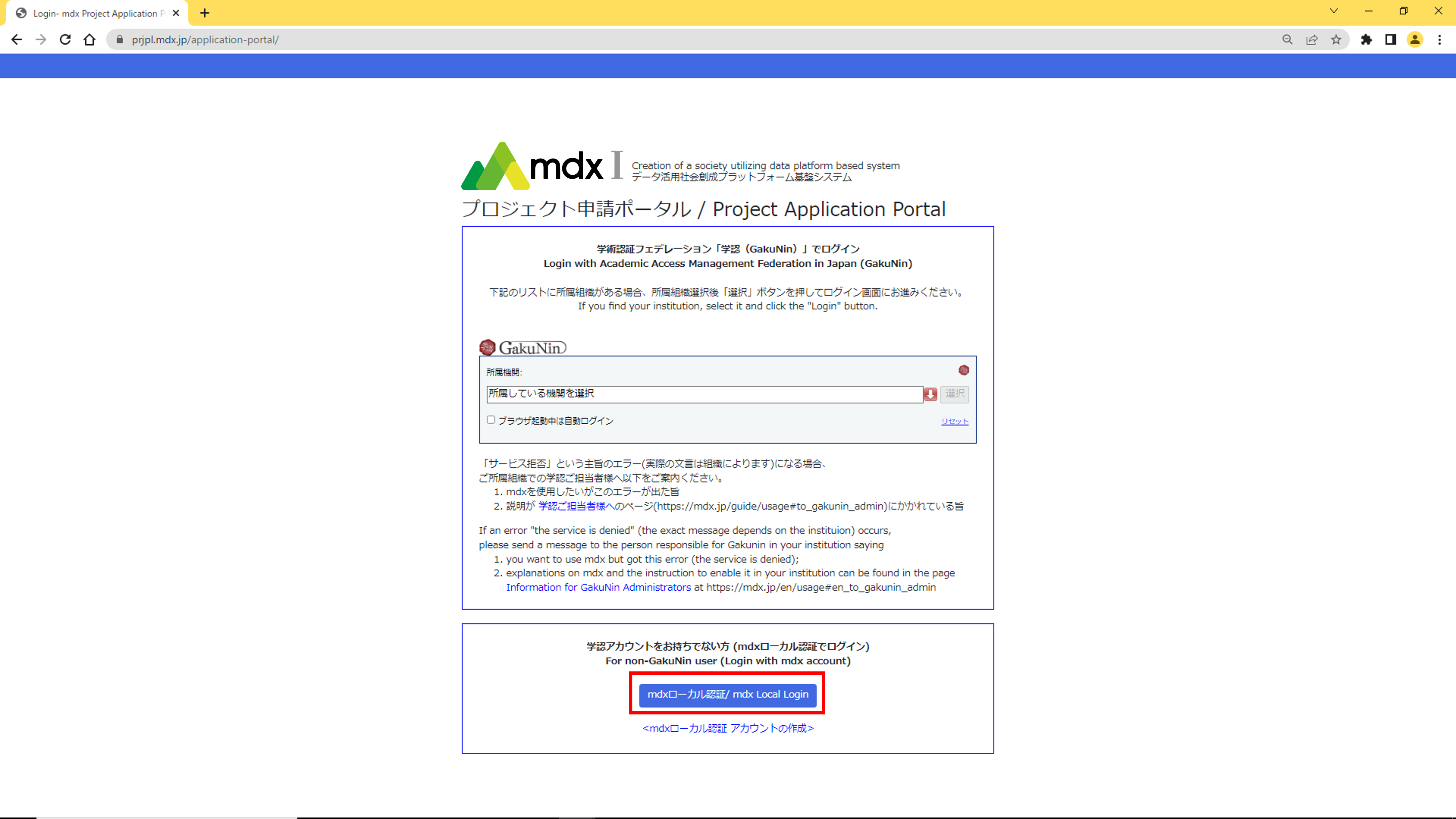 mdx local account: An account dedicated for mdx use in cases where a GakuNin account is not available.