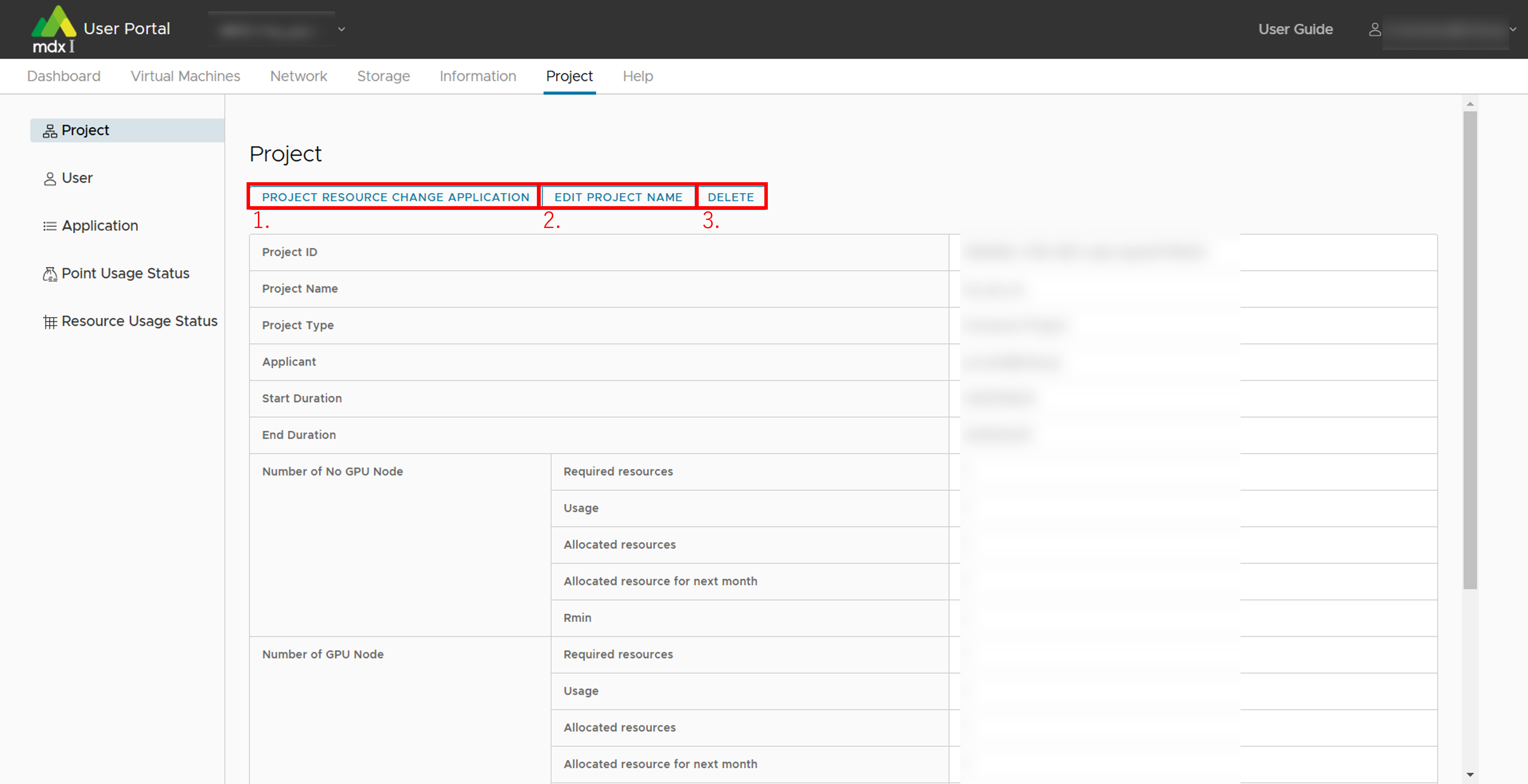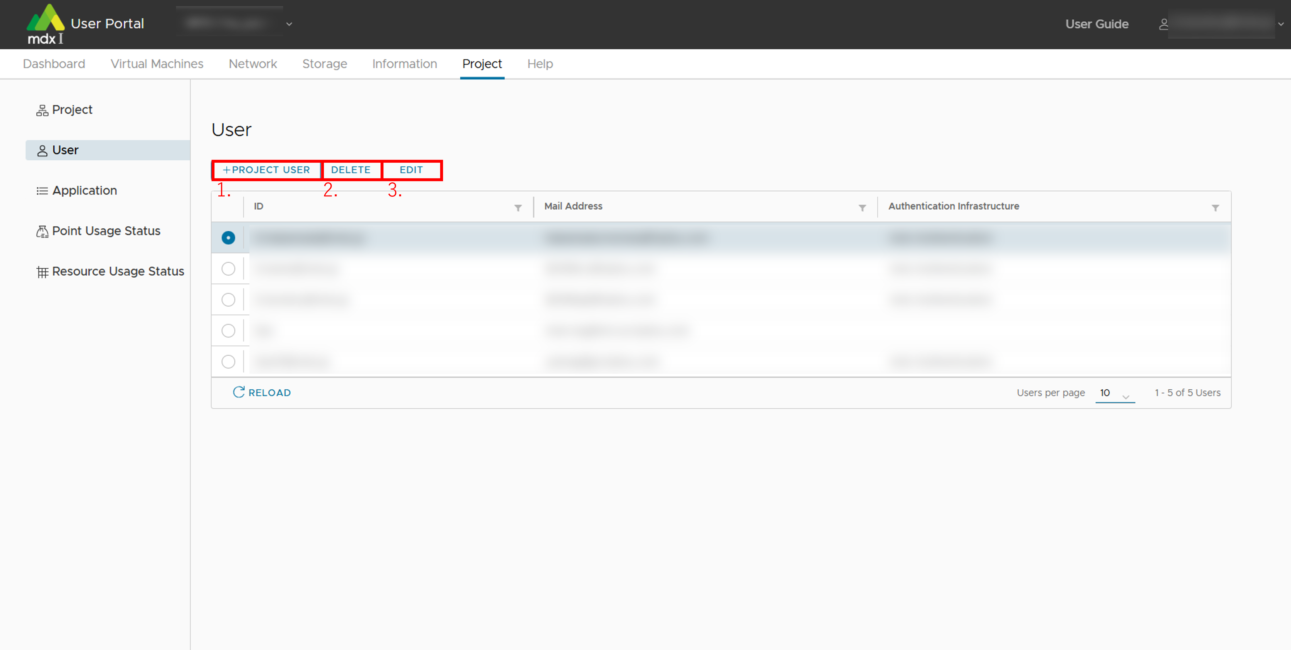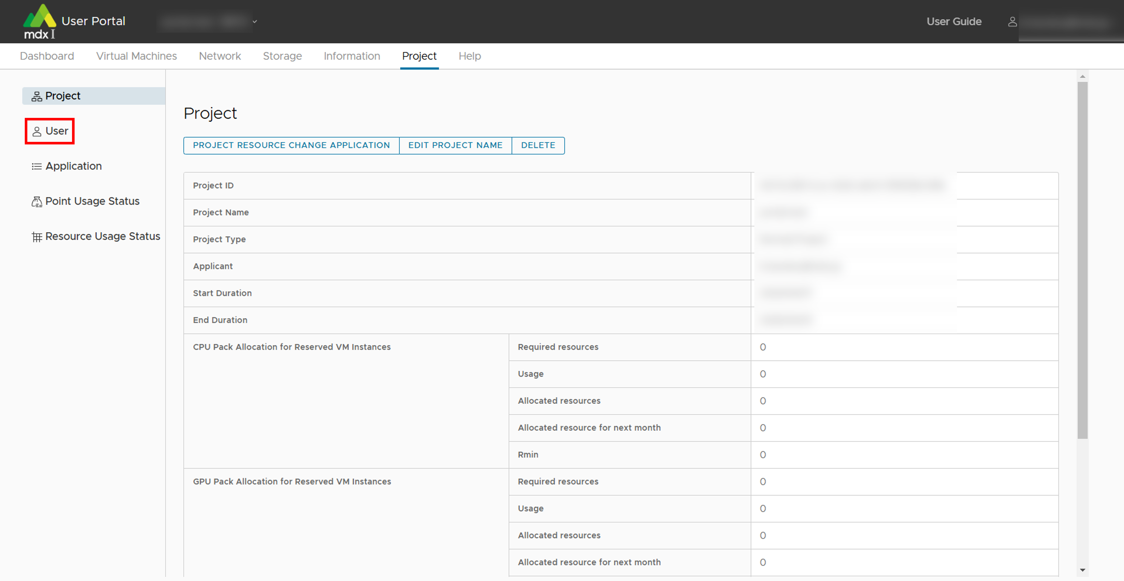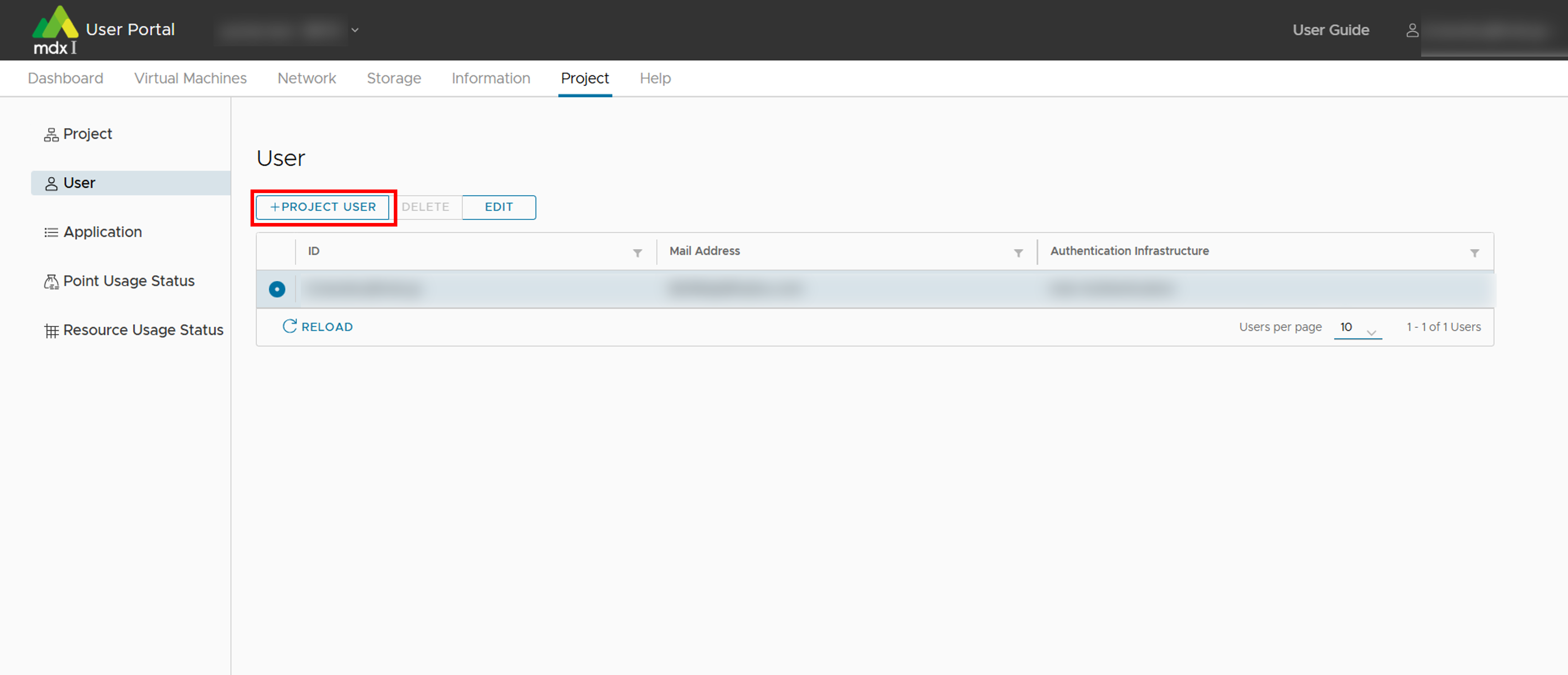 To start using mdx, it is necessary to enter the purpose of use, period of use, and information on each person in charge, and apply (Project application) .