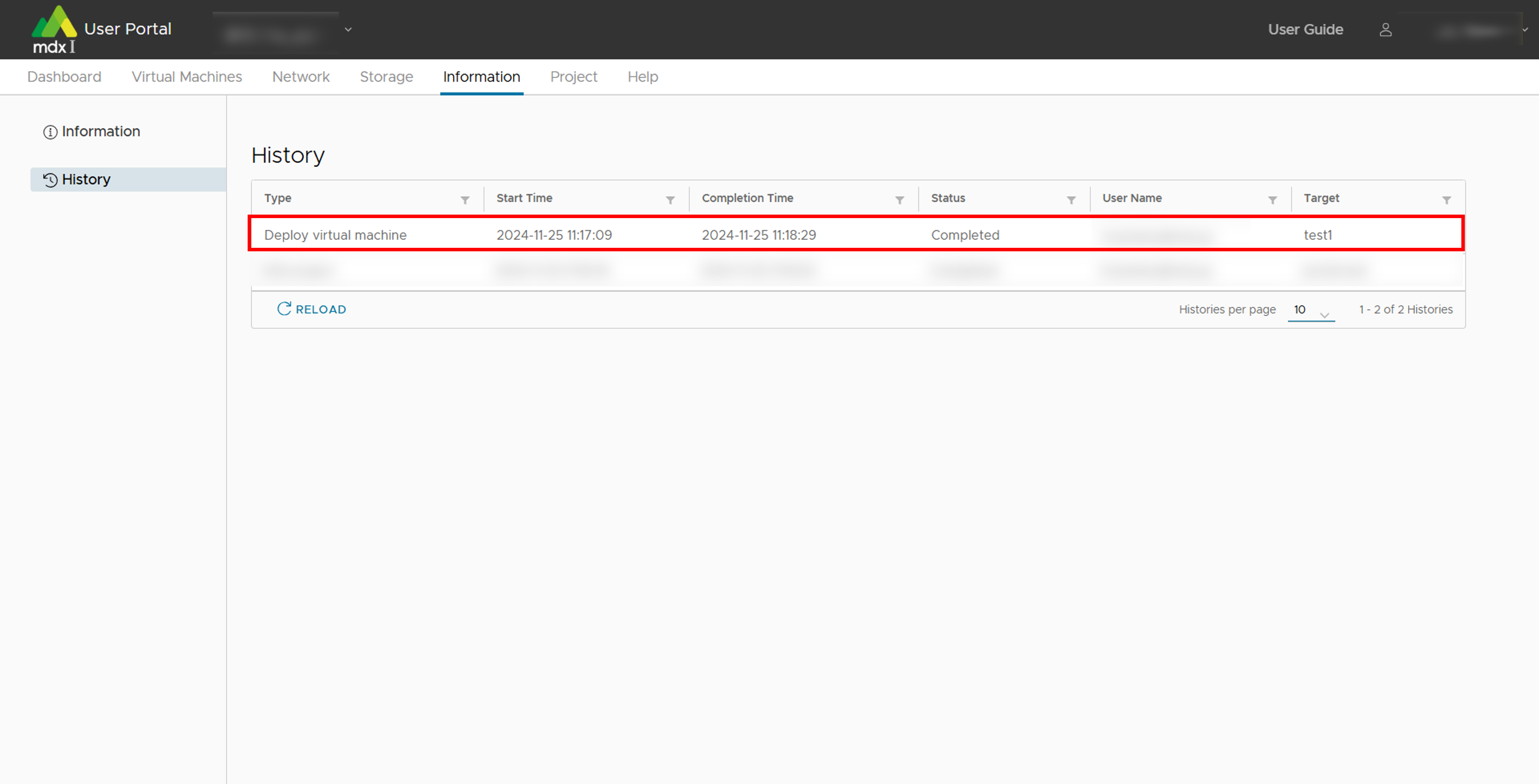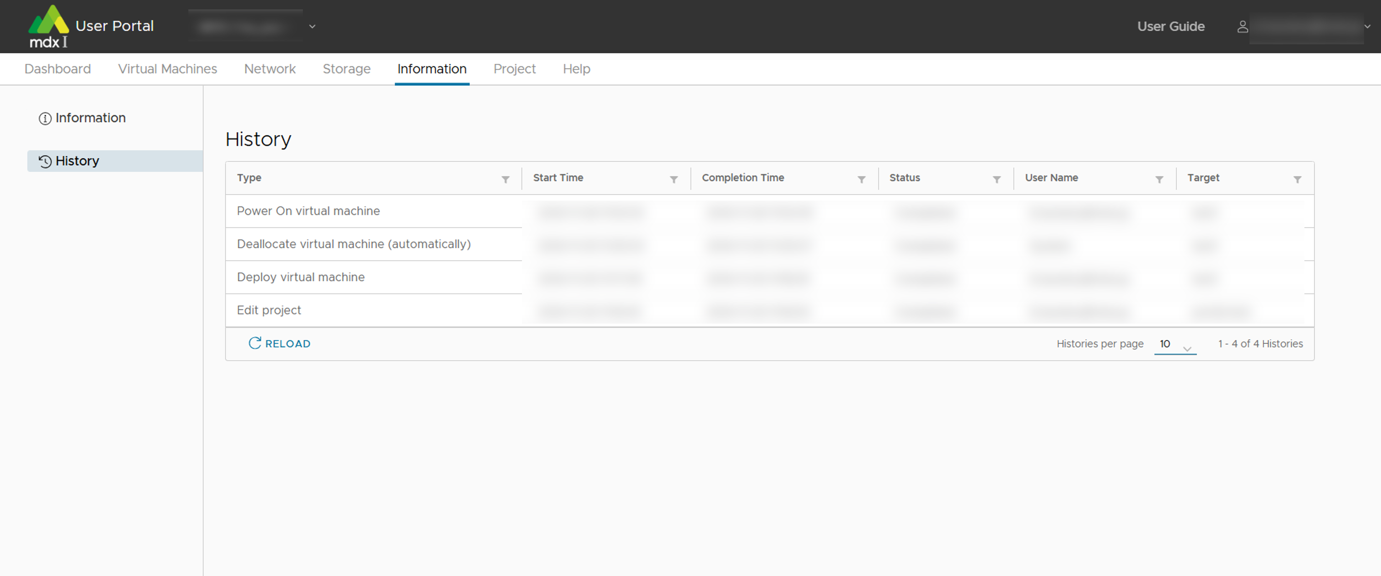 The User Portal primarily handles tasks such as operating the virtual machines. The User Portal provides the following functions.