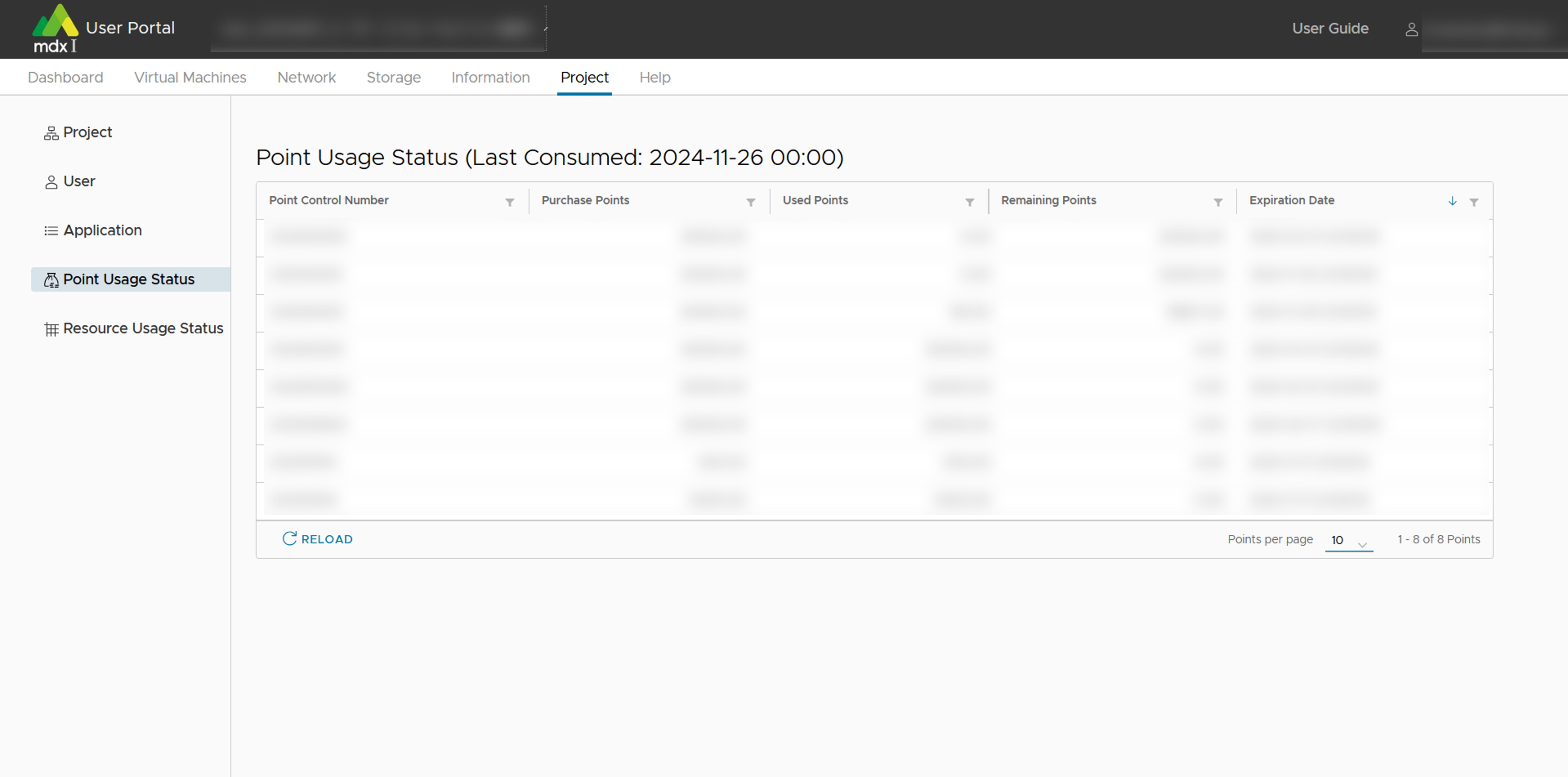 Please refer to Point usage status in the user portal if you would like to see individual point information.