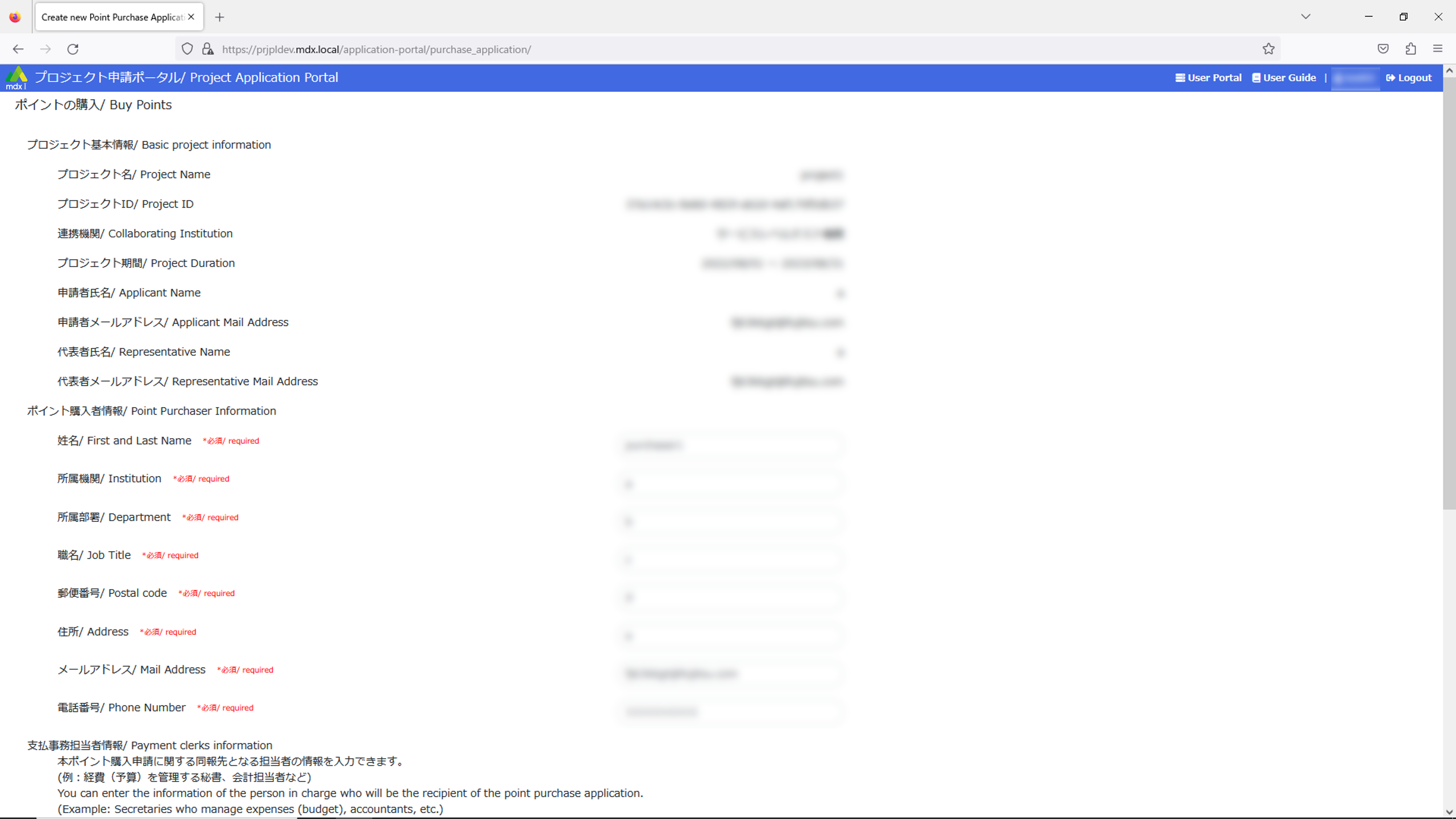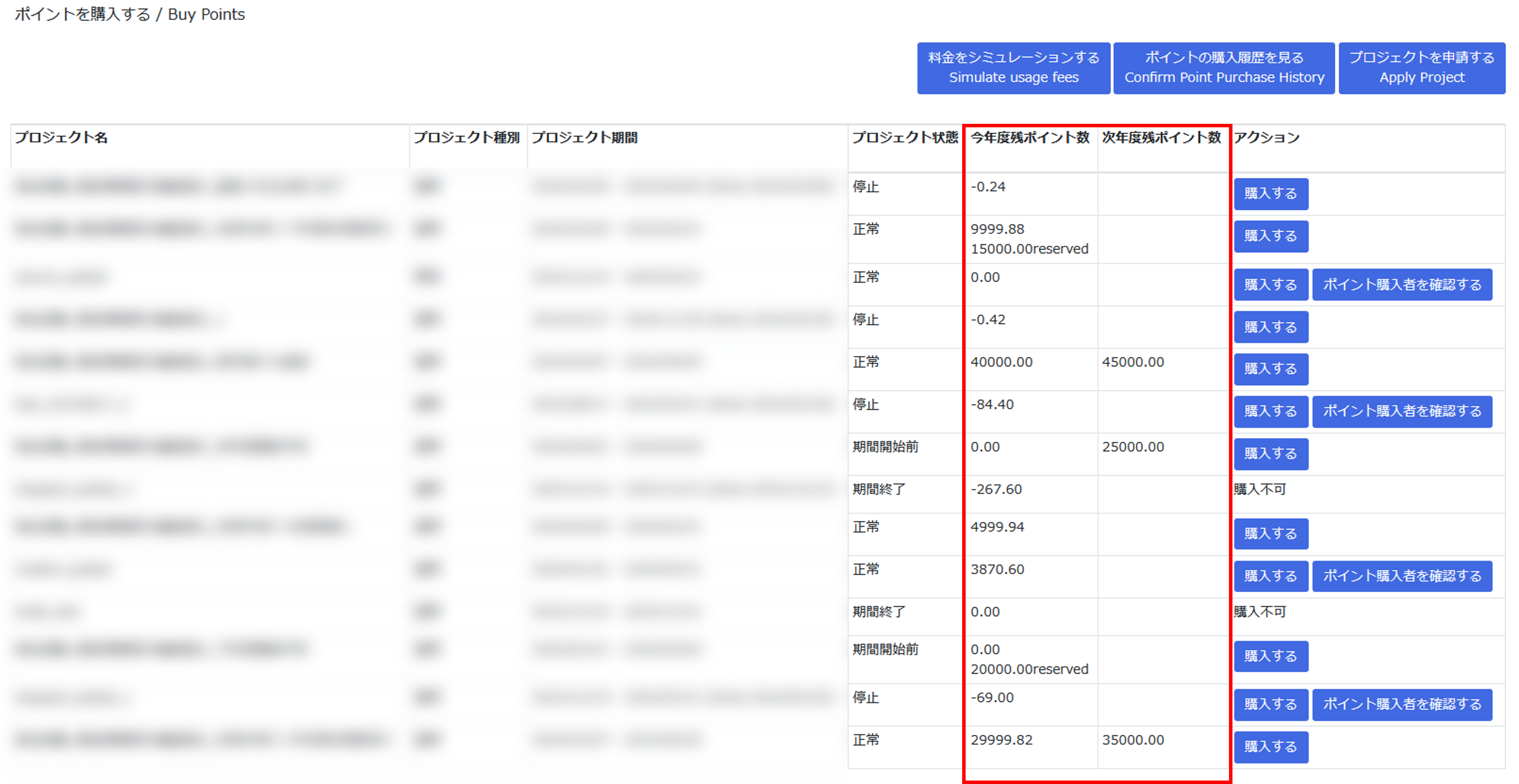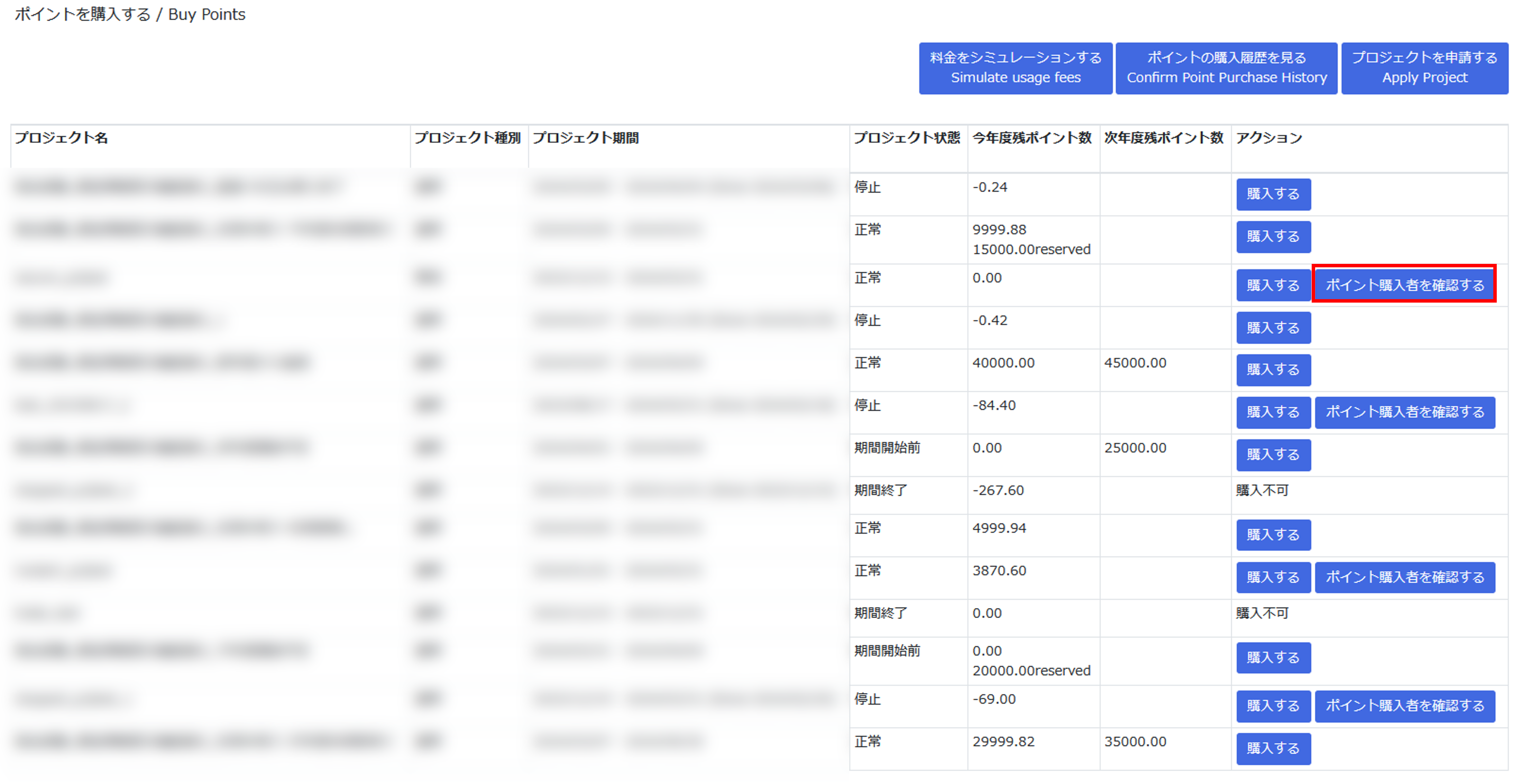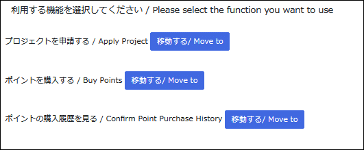 In the Project Application Portal, you primarily perform tasks related to project applications and point purchase applications. The Project Application Portal provides the following functionalities.