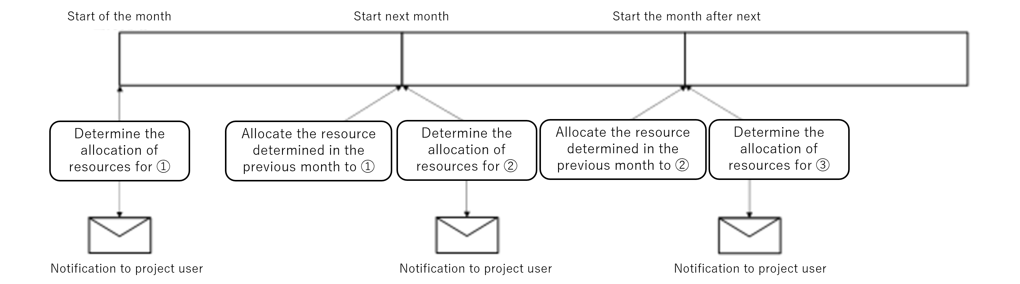 - Calculated using the maximum amount of resources allocated within a unit time for each resource type at the point consumption timing.Note that changes in the resources are caused by project resource change application , etc.