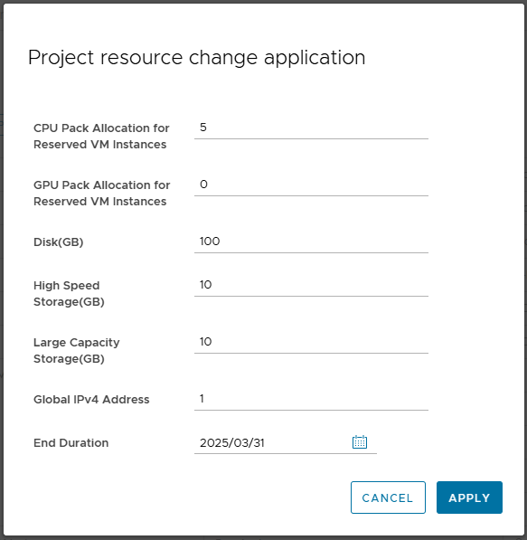 CPU Pack: 10, GPU Pack 1, Virtual Disk Storage: 100G, High-Speed Storage: 100G, Large-Capacity Storage: 100G